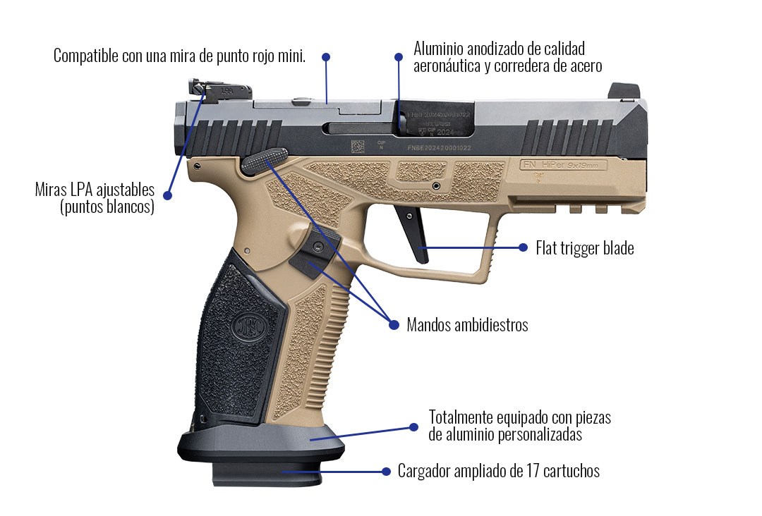 Los ingenieros de FN Herstal, empresa belga reconocida por la excelencia y fi abilidad de sus armas, han diseñado la FN HIPER® con un objetivo en su mente: la máxima ergonomía.